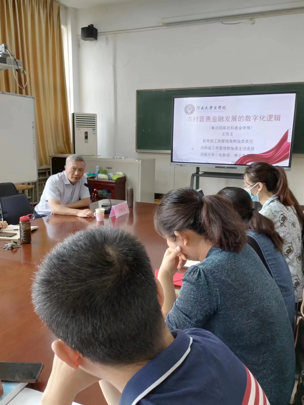 8月17日,我院邀请了河南大学商学院院长王性玉教授来校做学术报告,同时指导我院国家社科基金项目申报工作。上午的报告题目为《农村普惠金融发展的数字化逻辑--兼谈国家社科基金申报》。报告会由太阳集团网址8722院长张振江主持,我院教师及其他学院部分教师参加了此次报告。
