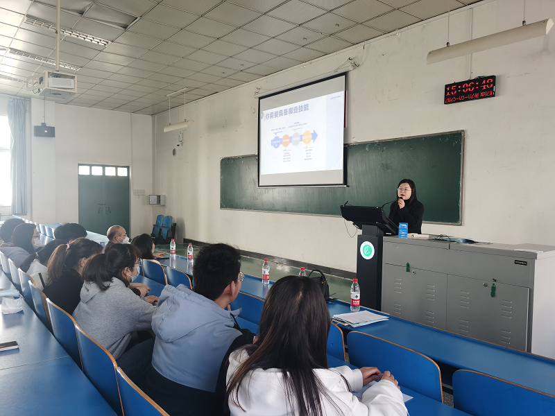 随后,国泰君安证券平顶山营业部总经理耿千淇以自己的从业经验为引,通过分享一些求职经历和面试过程,声情并茂地讲述了行业规划和提前了解行业信息的重要性。只有提前了解、提前准备,才能清楚公司招聘需求、找准适合自己的岗位。并希望同学们积极投递简历,成为国泰君安证券股份有限公司的一员。