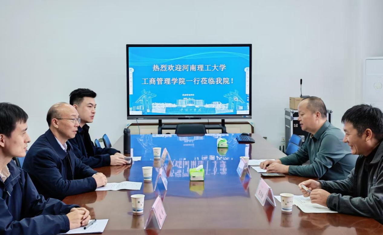 2025年10月17日上午,河南理工大学工商管理学院大数据管理与应用系主任龚关、系党支部书记张西栓一行到访我院,就大数据管理与应用专业的建设与发展进行深入交流。我院院长张振江、大数据管理与应用教研室主任闫涵及专业骨干教师赵明参加座谈。