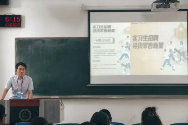 活动伊始,深圳慧通商务有限公司人事赵金帅介绍暑期实习生计划,包括实习岗位、招聘要求、实习待遇及转正机会等,让学生们全面了解实习项目。随后,HR介绍公司自身情况,涵盖发展历程、企业文化、组织架构等,让学生感受公司魅力。