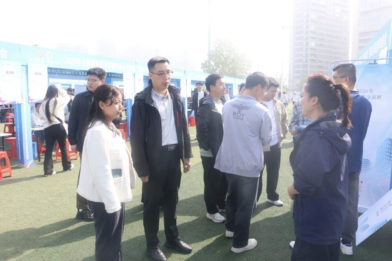 4月10日,“职引未来 职在河南”2026年全国城市巡回招聘平顶山专场暨“豫荐未来 青春启航”太阳集团tcy8722春季双选会在湖滨校区体育场成功举办。我院积极组织大四毕业生和大三年级学生参会,并同步开展访企拓岗、校企合作前期对接工作。党委副书记李刚、副院长刘军英,各教研室主任,毕业班辅导员及学生代表共同参加此次活动。