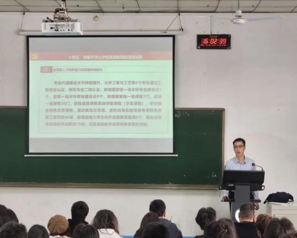结合“十五五”规划,李刚立足经济管理类专业特点,结合学院和学校发展实际,既介绍了学校“十四五”时期的重要发展成果,也讲解了对接“十五五”发展需求的人才培养规划,强调学校和学院始终为同学们成长为适应时代需求的高素质应用型人才搭建坚实平台,鼓励同学们立足专业,增强个人综合素质,牢记青年人的责任使命。