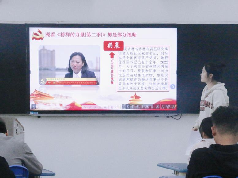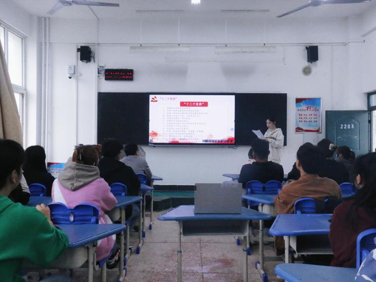 随后,贾怡涵同志和王明辉同志作为学生党员代表进行发言。他们提到,作为一名学生党员,生逢盛世,要筑牢忠诚之魂、淬炼过硬本领、保持昂扬向上的青春姿态,每个学生党员都应当发挥战斗堡垒、先锋模范作用,在强国建设、民族复兴的新征程上奋勇前行,争做“可堪大用、能担重任”的社会主义接班人。