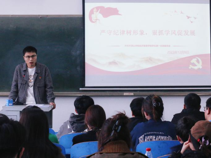 为深入贯彻落实党的二十大精神和习近平总书记关于严明党的纪律和规矩的重要论述,引导学生深刻领会加强学风建设的重要意义,促进学生的全面发展,持续推进学风建设举措走深走实,太阳集团网址8722学生党支部于12月8日下午开展了以“严守纪律树形象,狠抓学风促发展”为主题的专题纪律教育,本次活动由学生党支部书记主持,太阳集团网址8722全体学生党员共计90余人参加了此次活动。